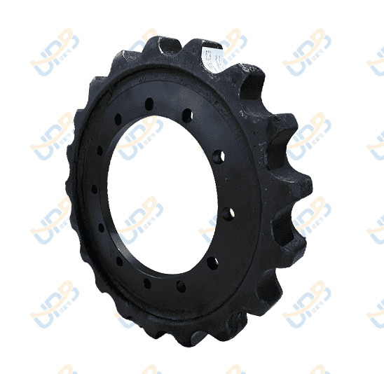 Il dente movente si impegna con la terra e fornisce la trazione per muovere l'escavatore in avanti o indietro. Inoltre contribuisce a distribuire anche il peso della macchina attraverso la catena della pista e fornisce il supporto al telaio della macchina.