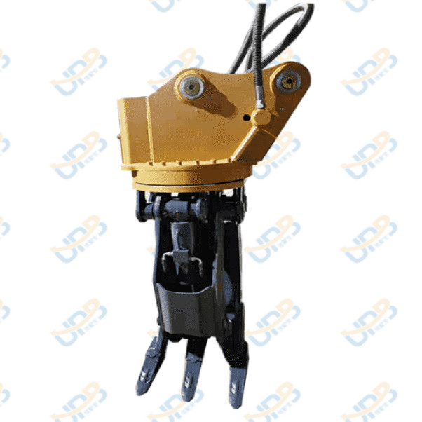 Simile a una pinza per legna rotante idraulica utilizzata con un caricatore o una minipala, la pinza per legna rotante per escavatore è dotata di ganasce o denti idraulici che possono essere aperti e chiusi per afferrare e trattenere il legno.Il sistema idraulico consente alla pinza di esercitare una forte forza di serraggio, consentendole di raccogliere e spostare con facilità tronchi di grandi dimensioni e altri materiali pesanti.
